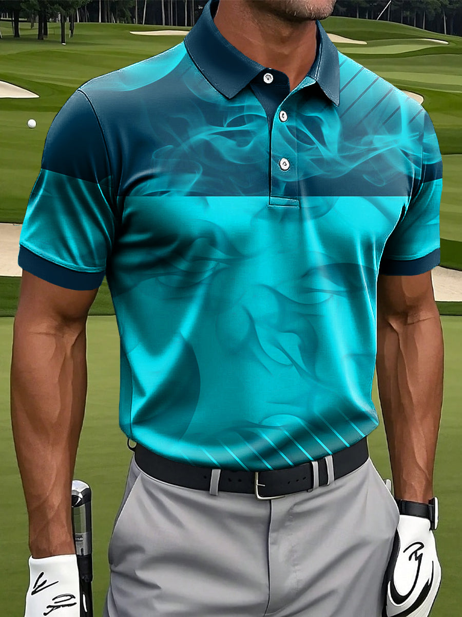 Мъжки класически раирани артистичен печат случайни бизнес поло риза