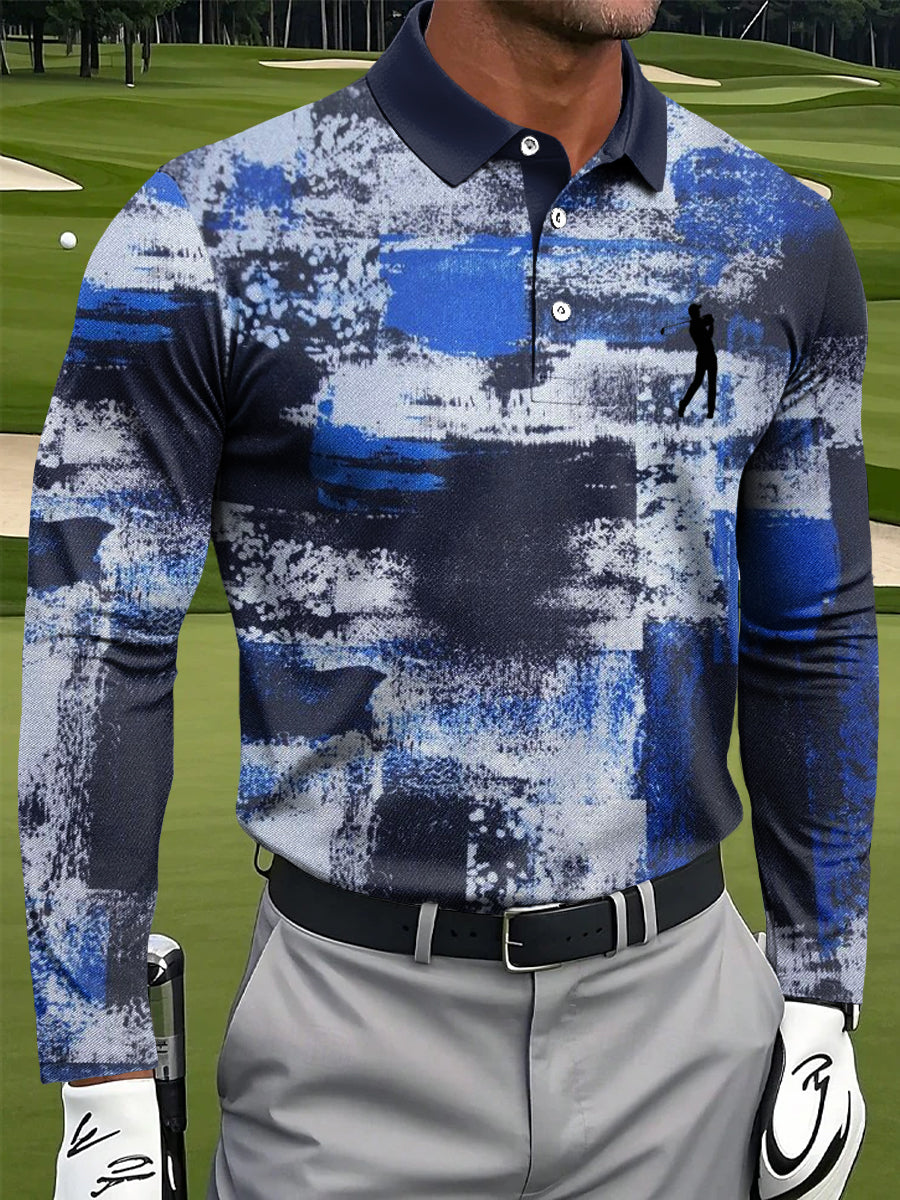 Мъжки реколта затруднени цветни артистичен печат случайни бизнес с дълги ръкави поло риза