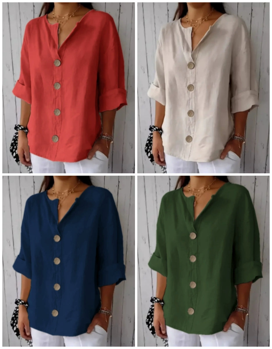 ЕЛЕГАНТЕН ДИЗАЙН НА КОПЧЕТАТА - Елегантният десен на копчетата отпред придава на тази блуза изтънчен, но дискретен вид, което я прави вечно допълнение към гардероба ви.