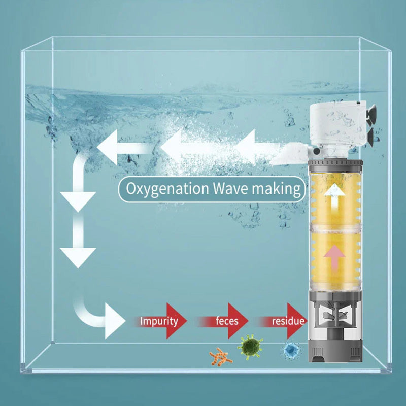 Тиха работа: Този филтър е проектиран с акустично изолиран двигател и шумозаглушаващи противоплъзгащи подложки. Многобройните шумозаглушаващи функции осигуряват тиха среда и позволяват на вас и вашите риби да си почивате необезпокоявани.