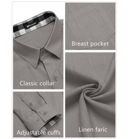【ВИСОКОКАЧЕСТВЕНА ТЪКАН】Тези ленени ризи са изработени от страхотна материя, леки, дишащи и меки на допир, не се свиват и не избледняват, отвеждат влагата.