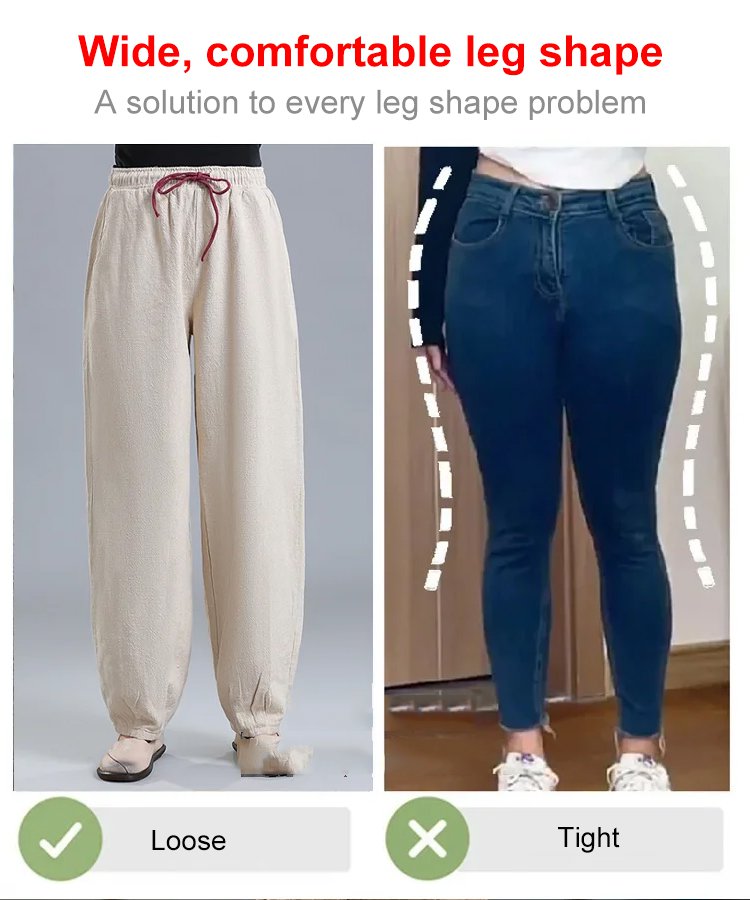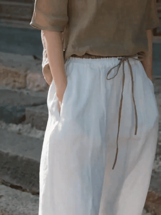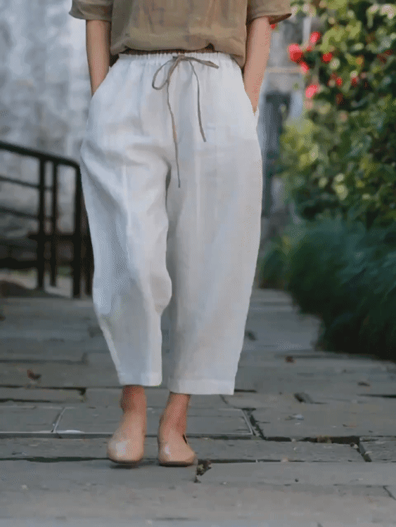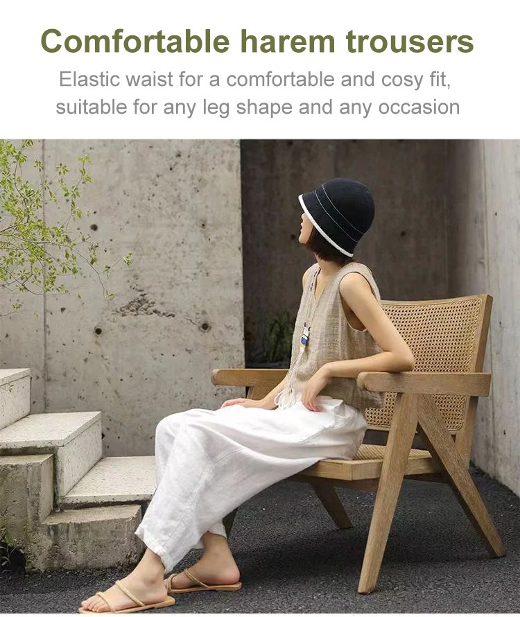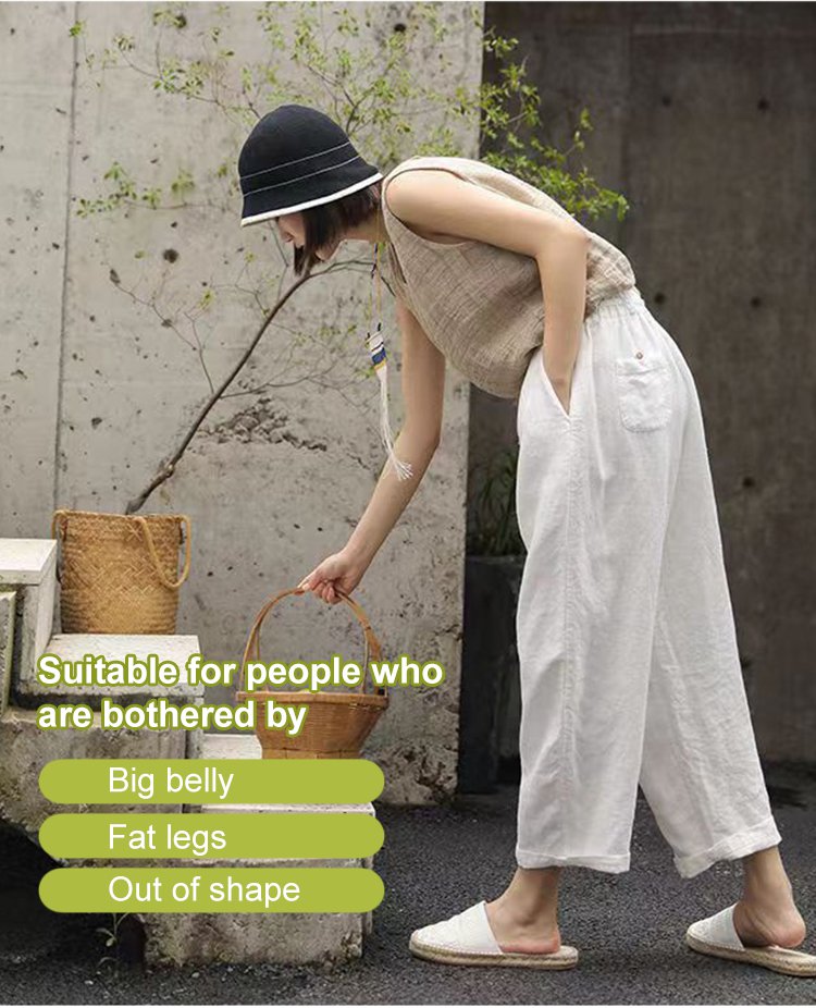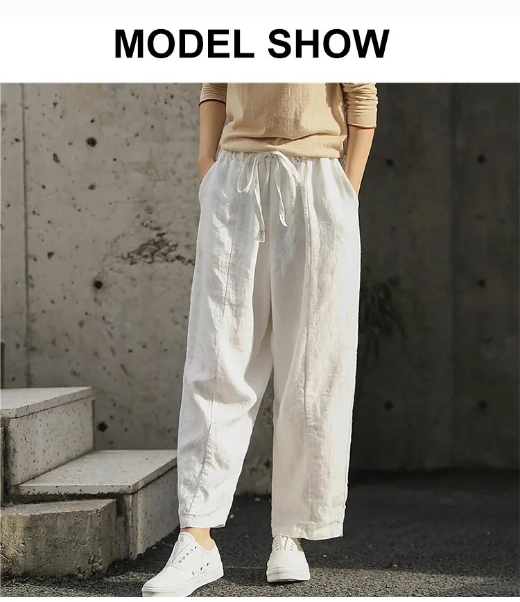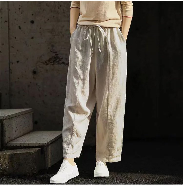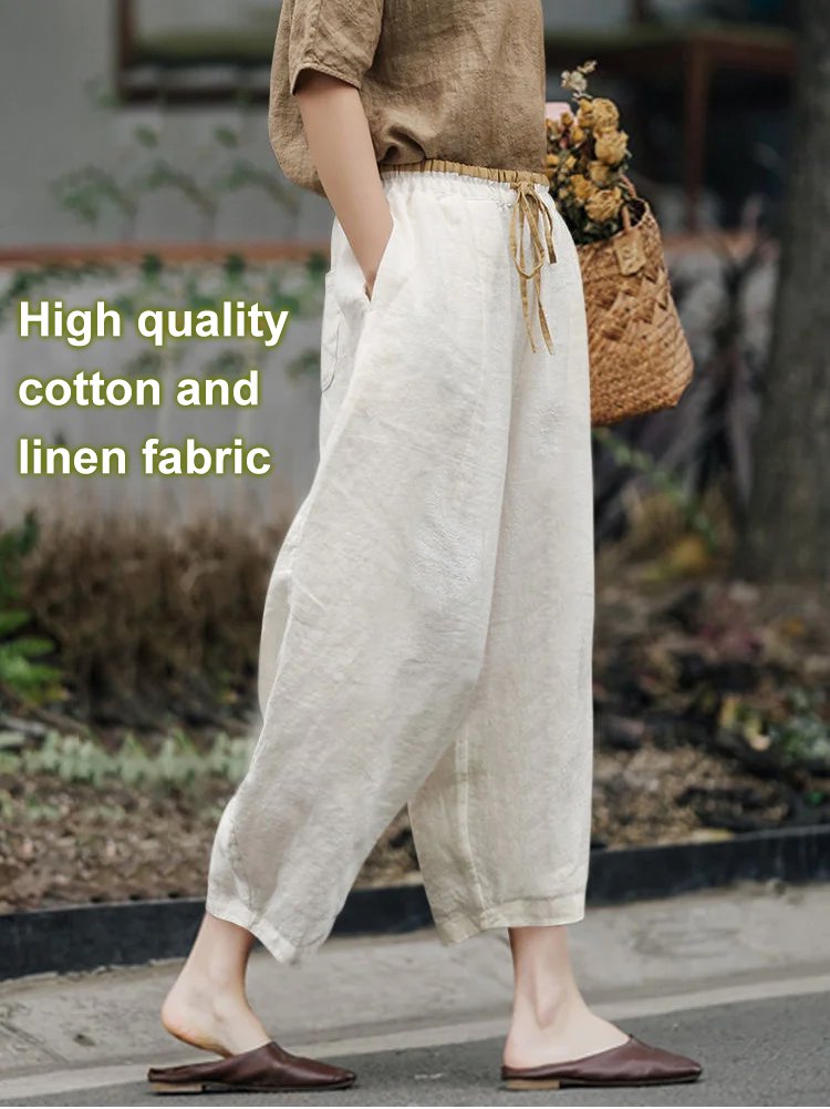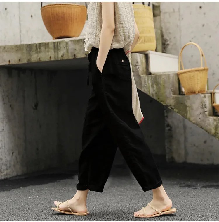 Реколта памук и лен еластична талия ежедневни панталони за жена