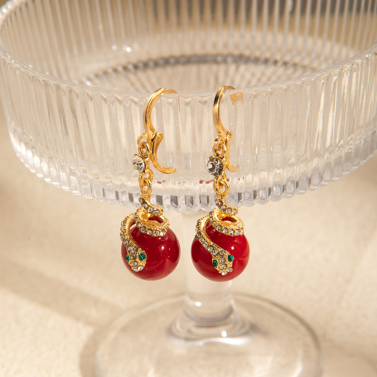 Пакетът включва: медни, червени, 1 чифт* обеци с позлатени змийски перлени обеци