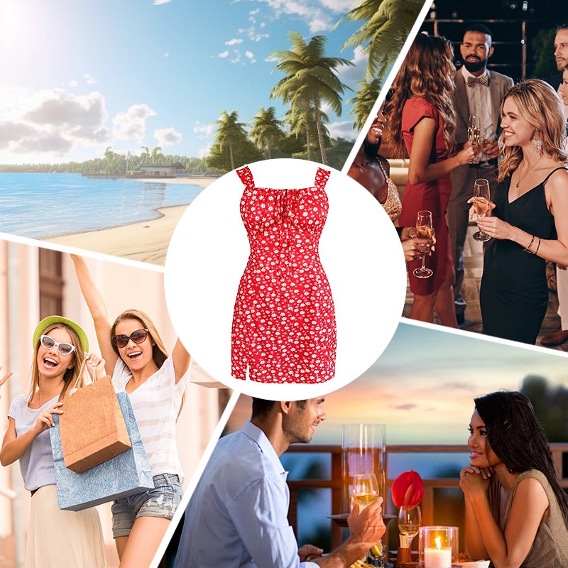 Пакетът включва: 1 × флорален печат мини рокля с каишка за спагети