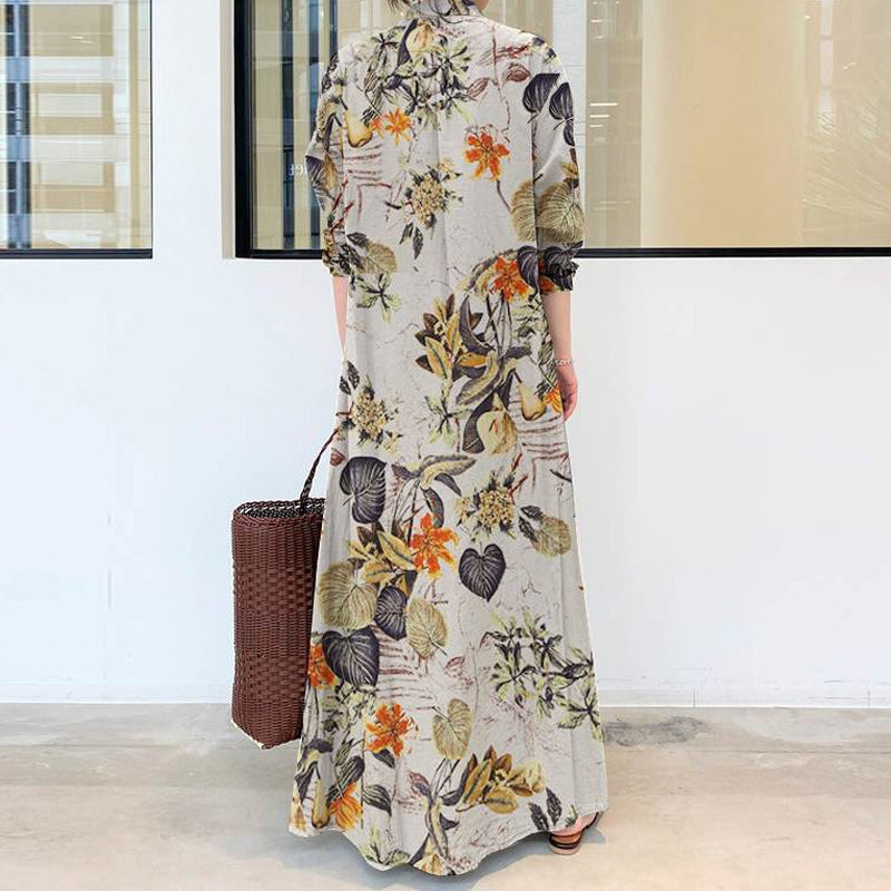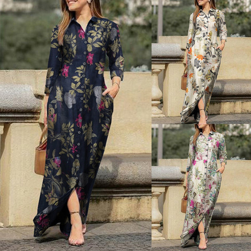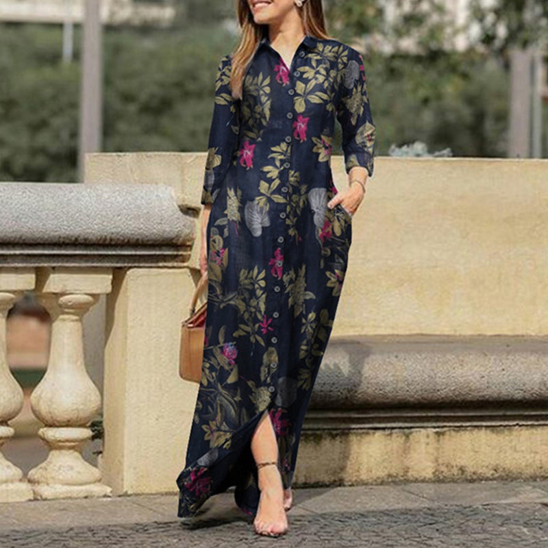 1* Дамска празнична рокля с яка, дълги ръкави и флорален принт