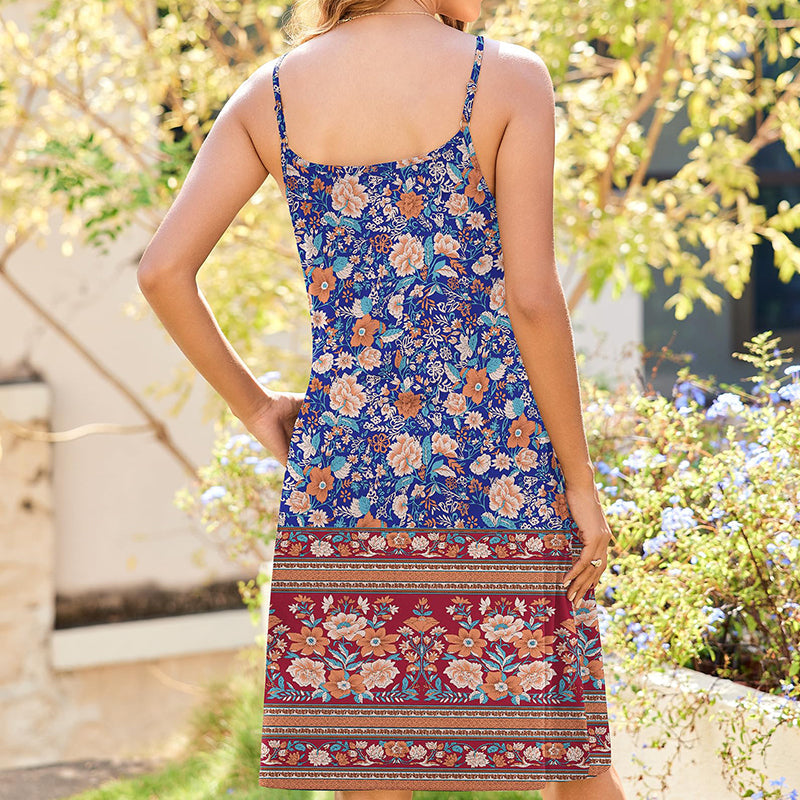 Пакетът включва: 1* Женска мини рокля без ръкави с флорални моти