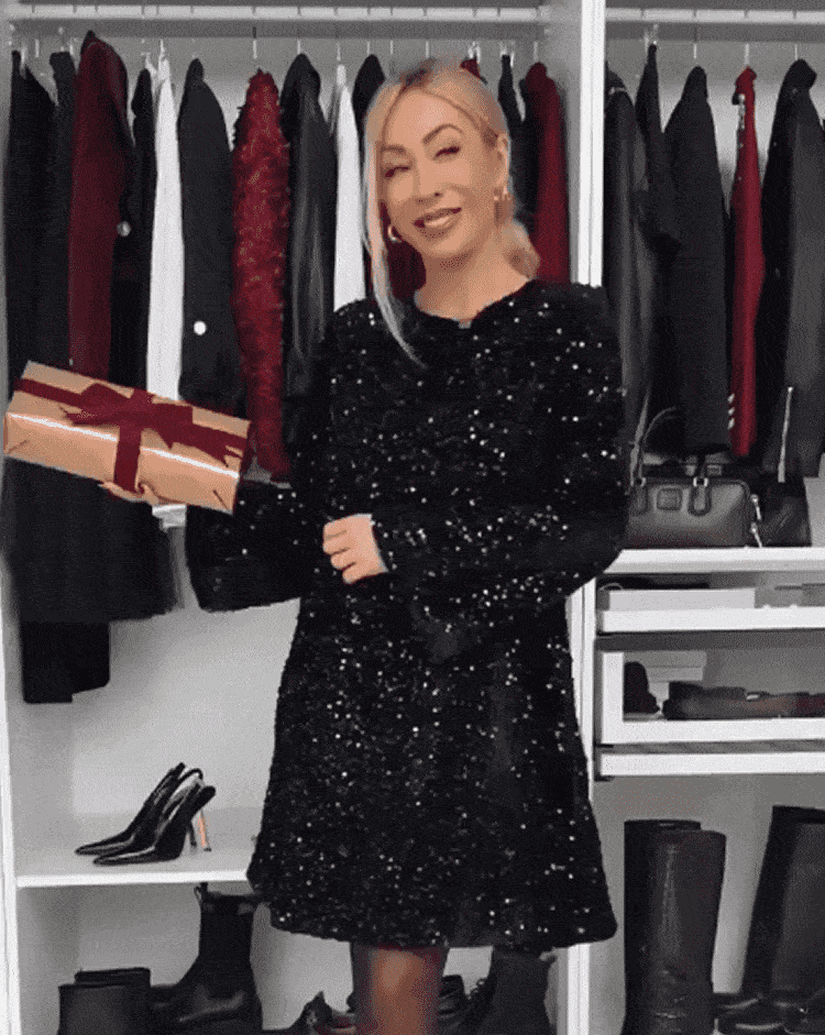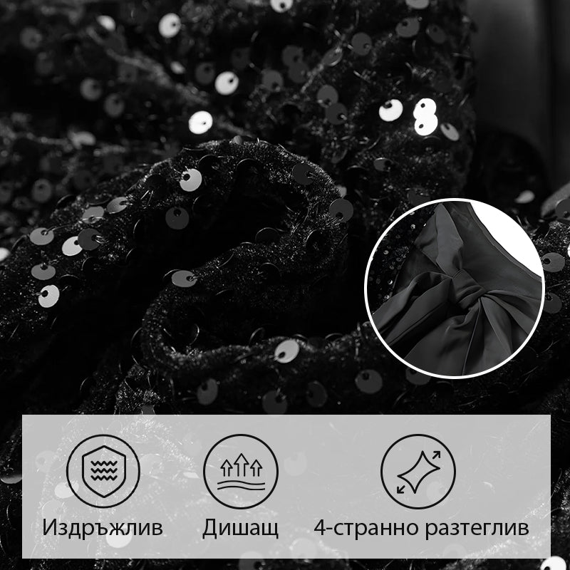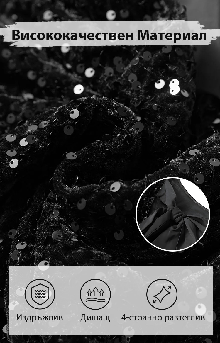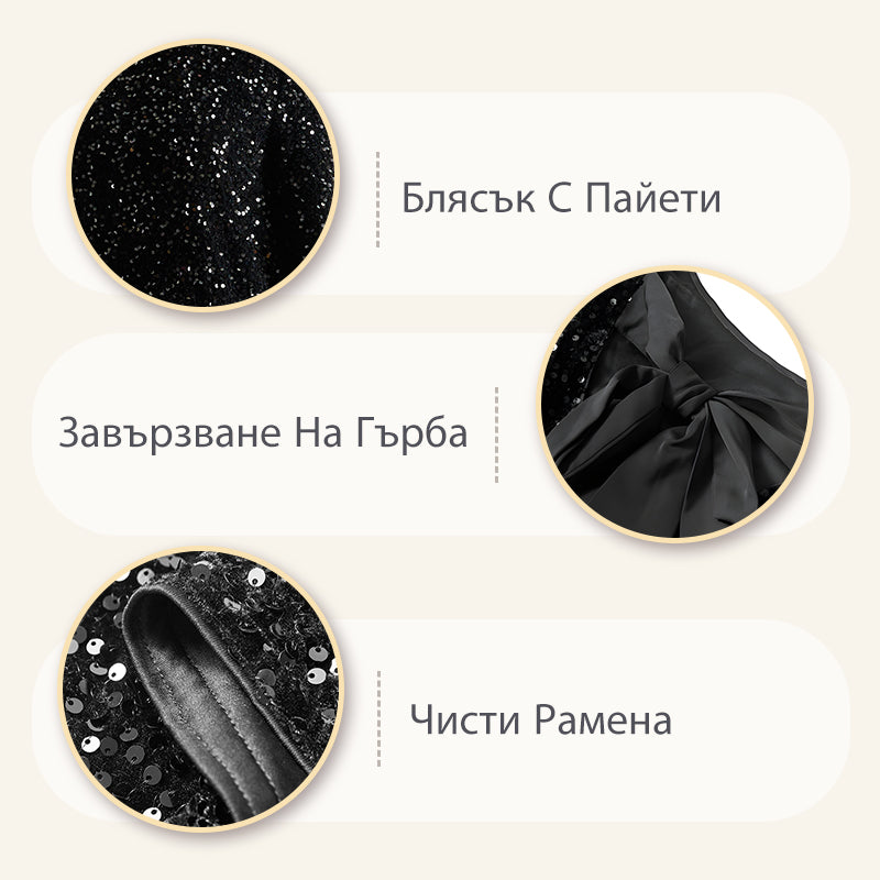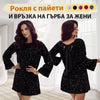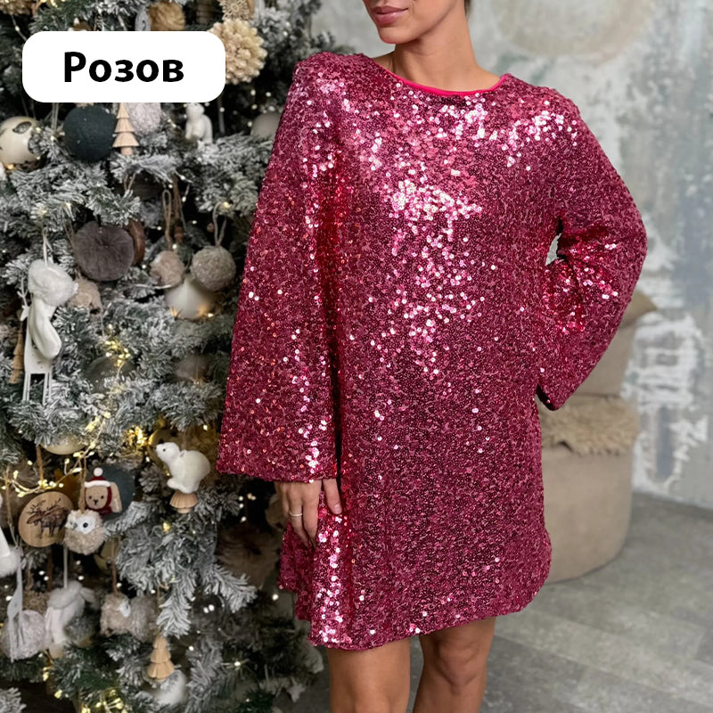 Свободна рокля с дълъг ръкав с пайети и вратовръзка