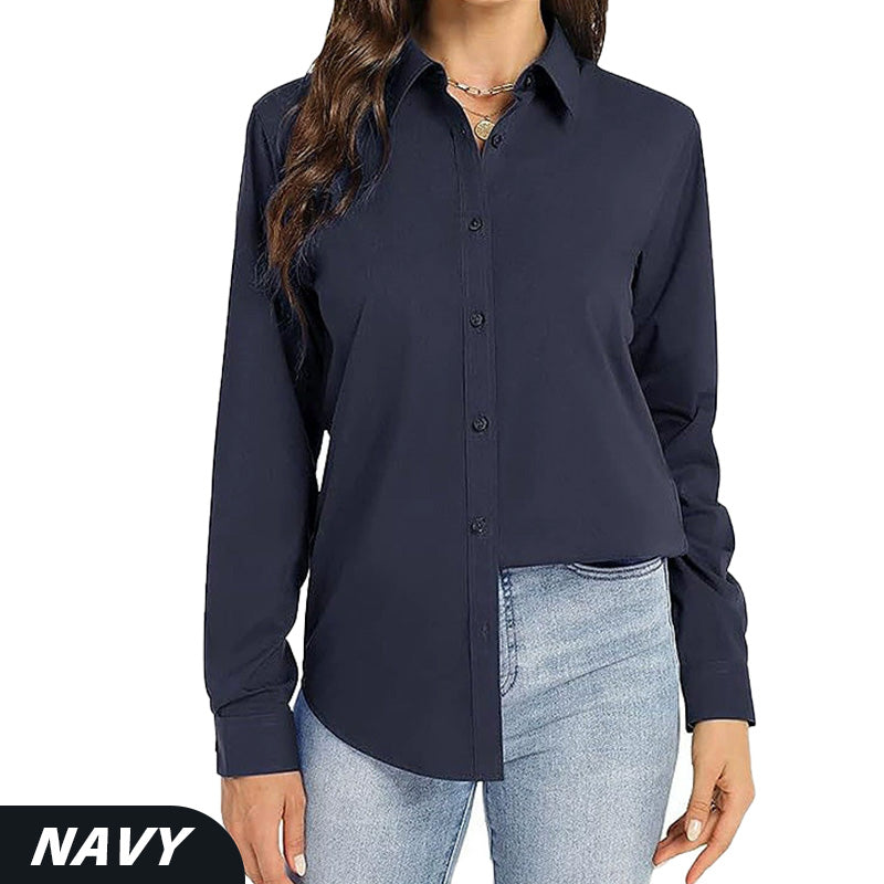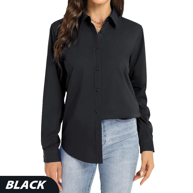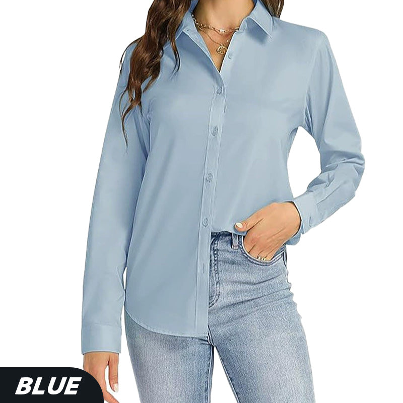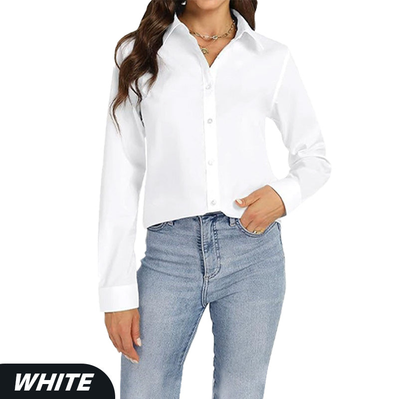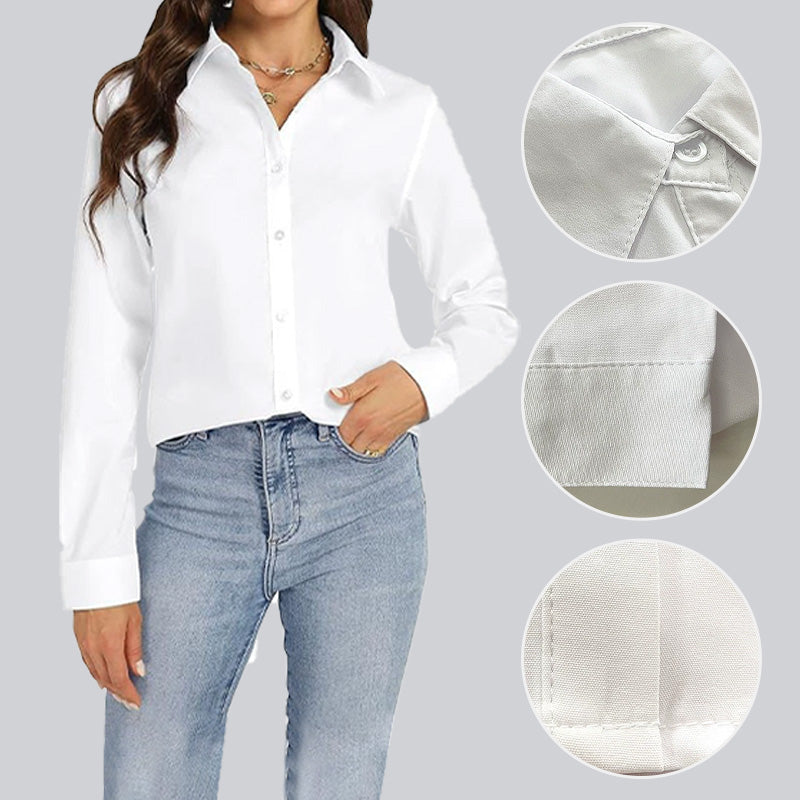 ПРОСТ ЕДИН ЦВЯТ - Неподвластният на времето едноцветен цвят осигурява универсалността на тази риза, като позволява лесното ѝ съчетаване с различни аксесоари или слоеве, което я превръща в основен елемент от гардероба.