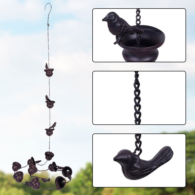 АРТИСТИЧЕН ДИЗАЙН - Заменете грозните водосточни тръби с елегантна и богато украсена верига за дъжд с очарователни верижни звена във формата на птица, за да придадете красота на дома си.