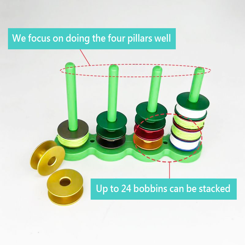 Работи с всички модели за домашно ползване (дори и старите модели Singer!) и стандартни пластмасови/метални бобини.