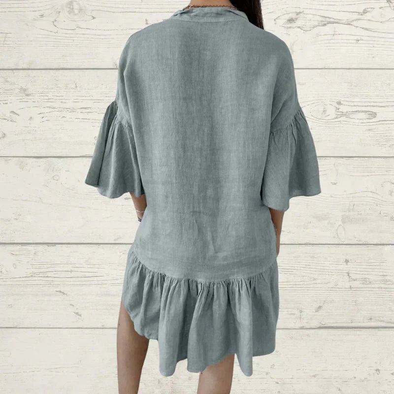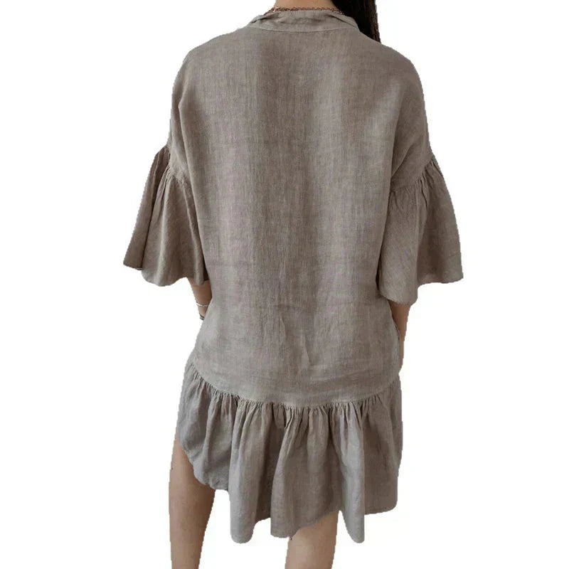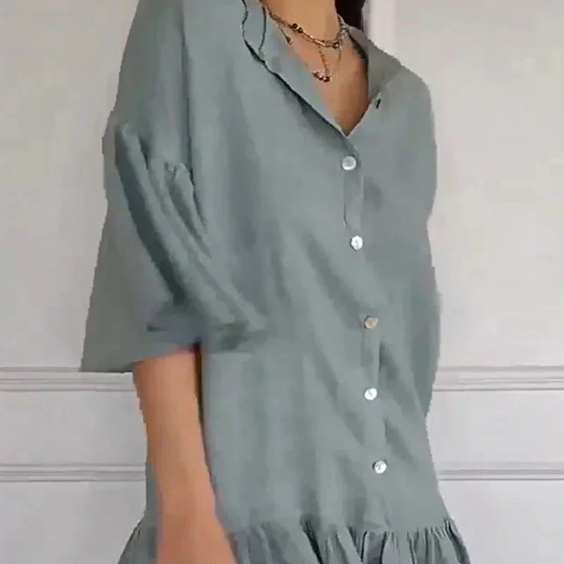 Елегантни ръкави с волани за стил и удобство- Широките ръкави с волани придават женственост, като същевременно позволяват свобода на движенията - идеални за ежедневен и елегантен стил.