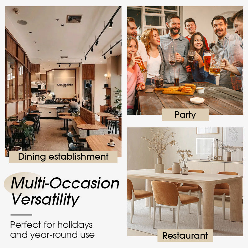 Лесно се поставя, незабавно празненство – без трудоемко дърпане, без опасност от спъване. Пада гладко, остава сигурно на мястото си. Тази лека красота незабавно украсява масата ви! Без плъзгане, без суетене – празничният чар се разкрива за миг. Никой няма да се досети, че сте постигнали това за броени секунди!