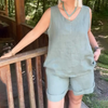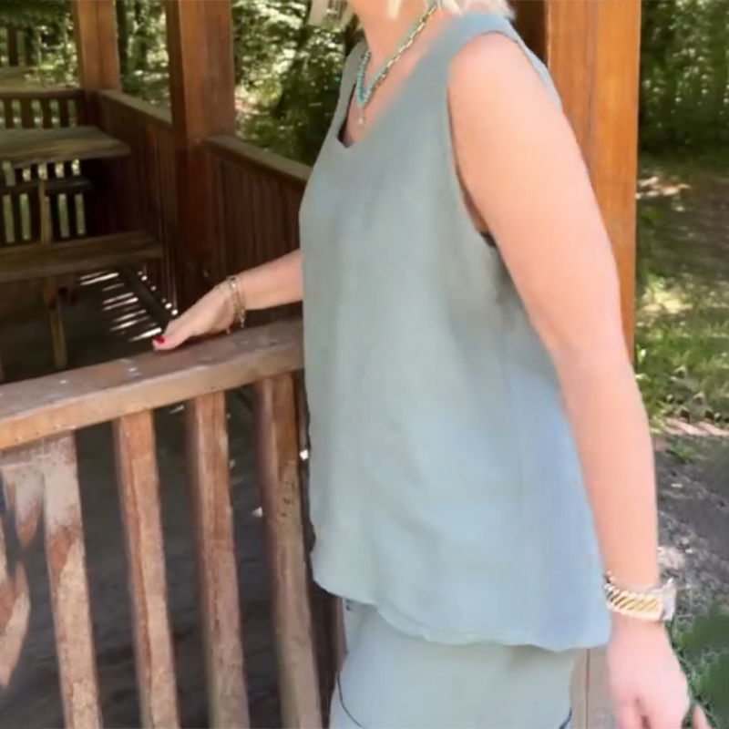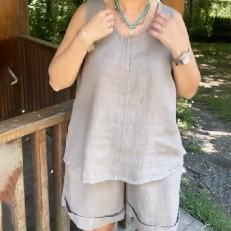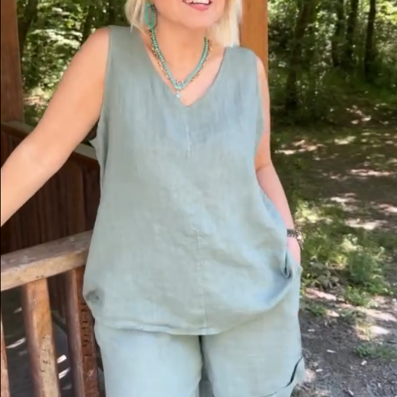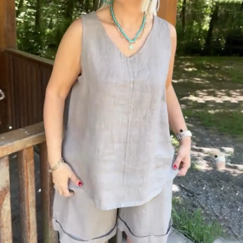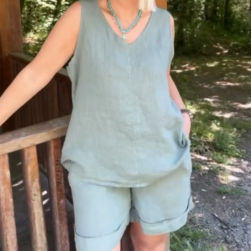 Пакетът включва: 1* Дамски случаен топ без ръкави с V-образно деколте & Комплект шорти