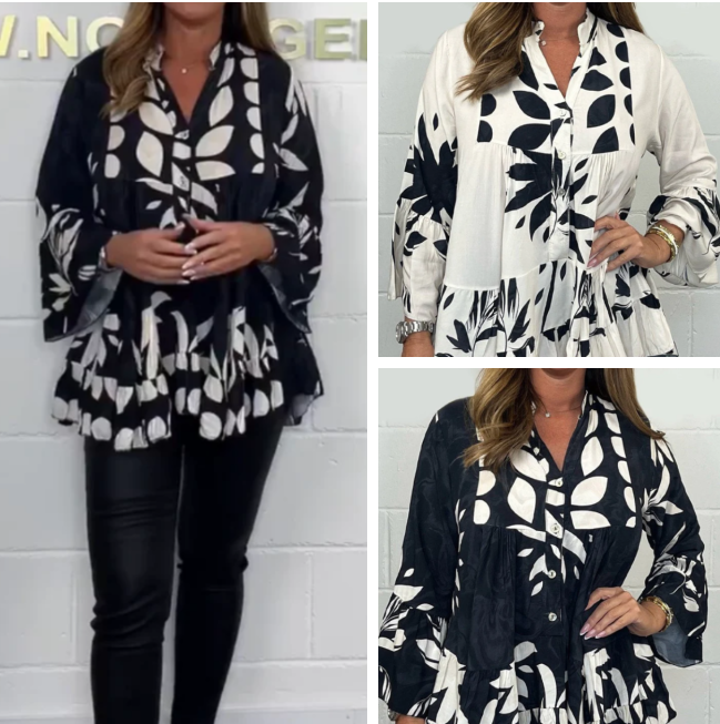 Пакетът включва: 1* V-образно деколте с флорални разперени ръкави с волани