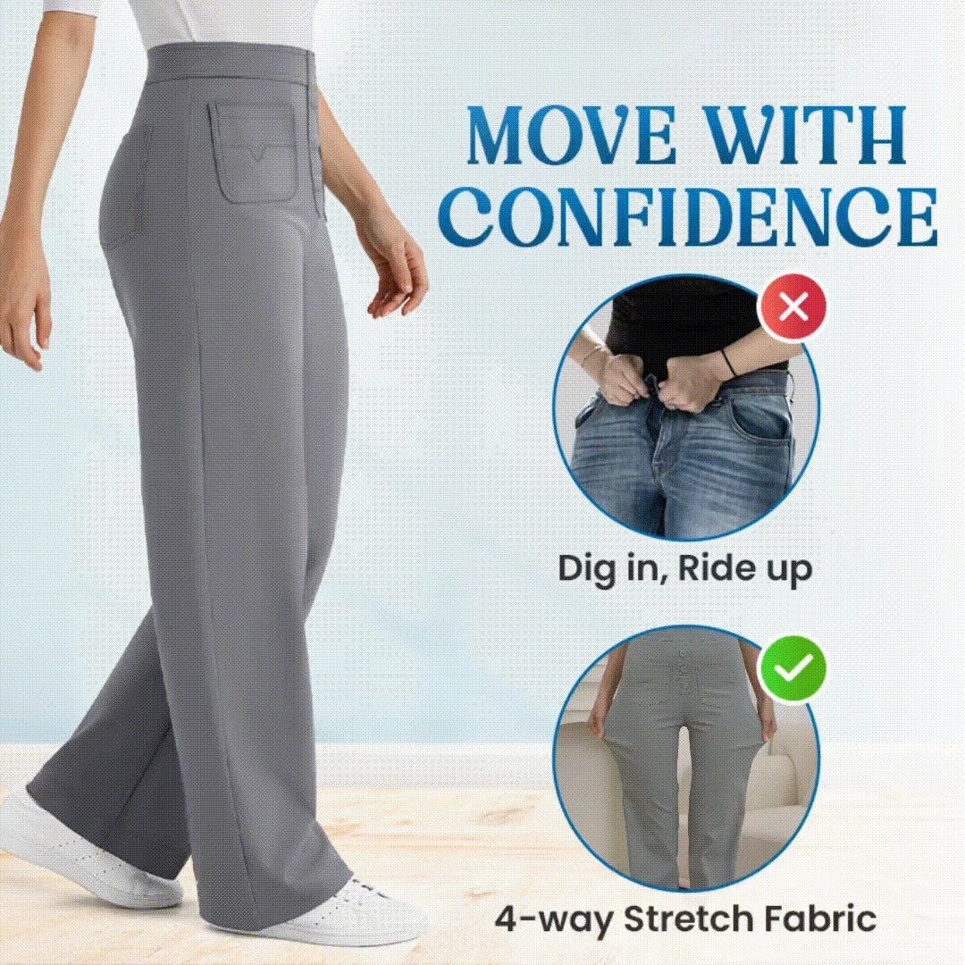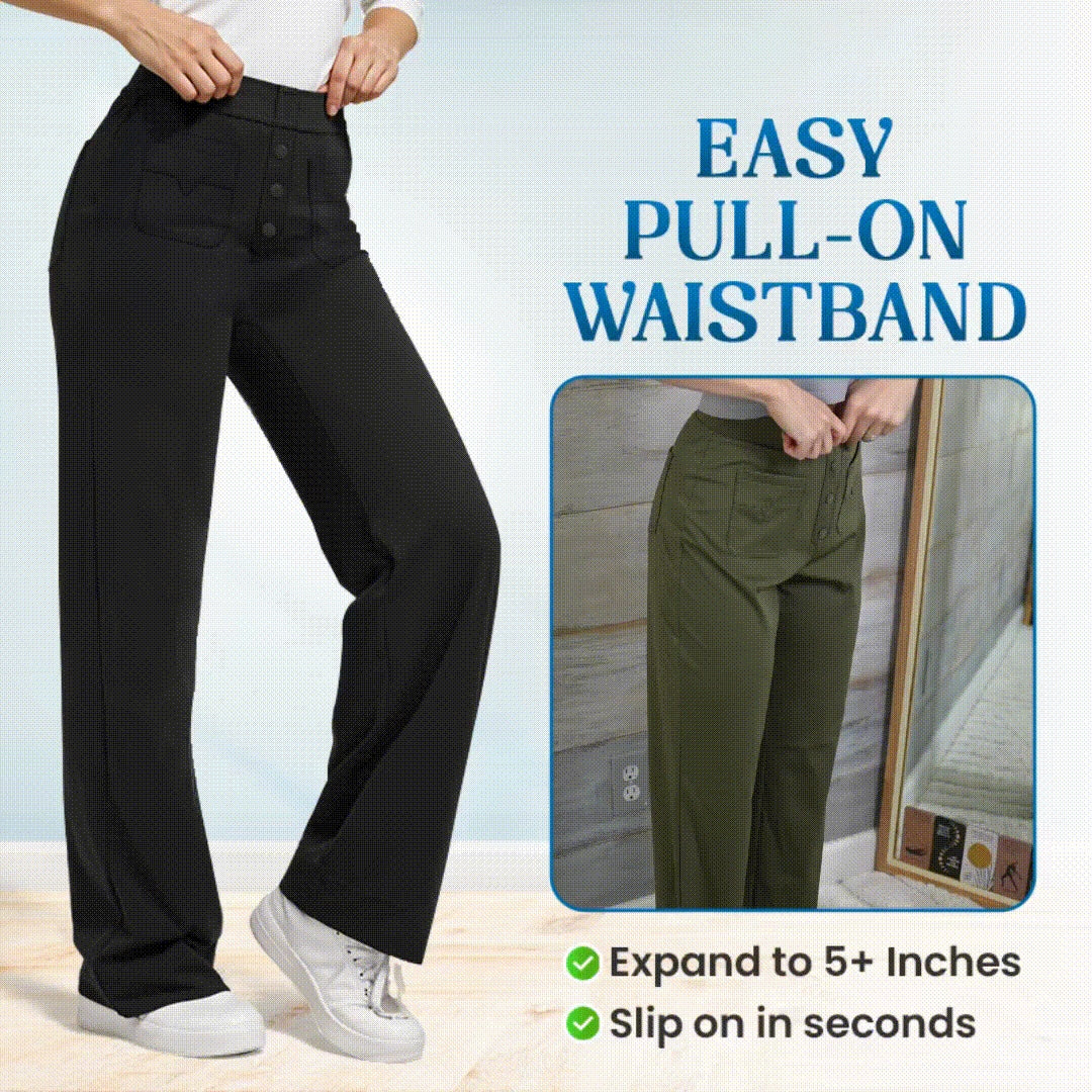 С еластичен колан и декоративно копче панталоните се обуват за секунди и са лесна алтернатива на традиционните копчета и шнурове.
