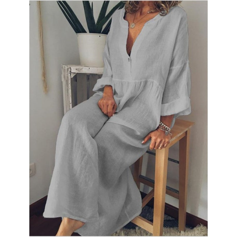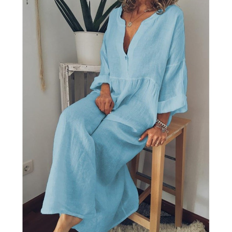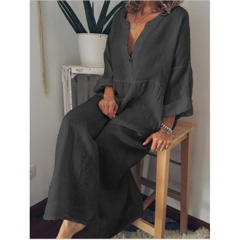 Лесна грижа за ежедневното носене: Издръжливата памучна ленена тъкан е лесна за поддръжка и изисква минимално количество грижи. Перете само в пералня, лесно се почиства и гарантира, че роклята ви ще остане свежа и готова за носене.