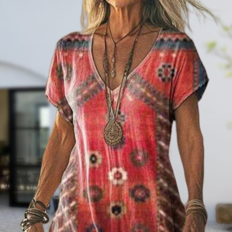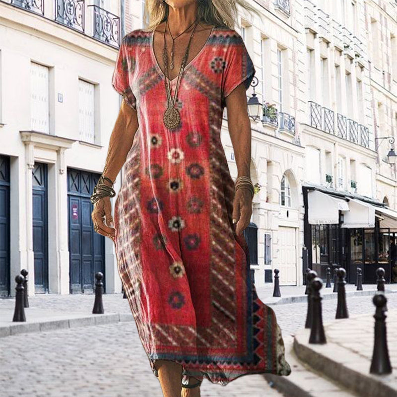 Пакетът включва: 1 * Дамска печатна рокля с дълъг къс ръкав и заострено деколте