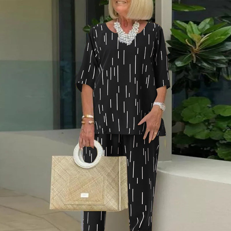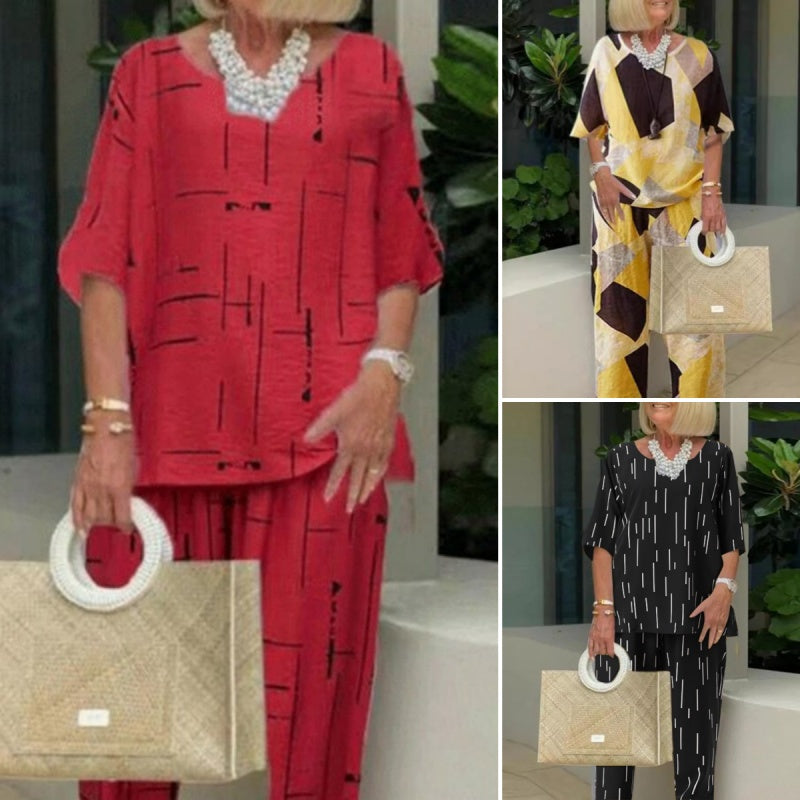МОДЕРЕН И СТИЛЕН ДИЗАЙН: Този комплект от две части включва свободно падащ топ с половин ръкав и подходящи панталони, които осигуряват модерна и безпроблемно стилна визия за всеки повод.